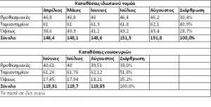 Πρώτον, συνεχίστηκε μέσα στον Αύγουστο η άνοδος των τραπεζικών καταθέσεων του ιδιωτικού τομέα (κατά περίπου 300 εκατ. ευρώ).